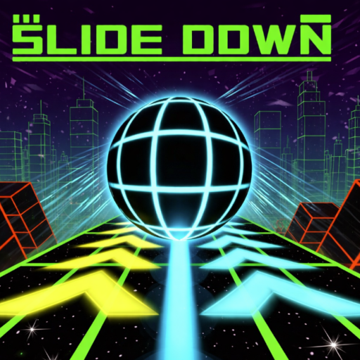 Slide Down is an infinite runner arcade game that is mainly about accuracy, rhythm, and constant movement. Players are in charge of a luminous ball that keeps rolling through the 3D rooftops of a colorful neon city without any interruptions. There are no jumps and no stops; the difficulty lies in perfecting the use of direction and gravity every single moment.